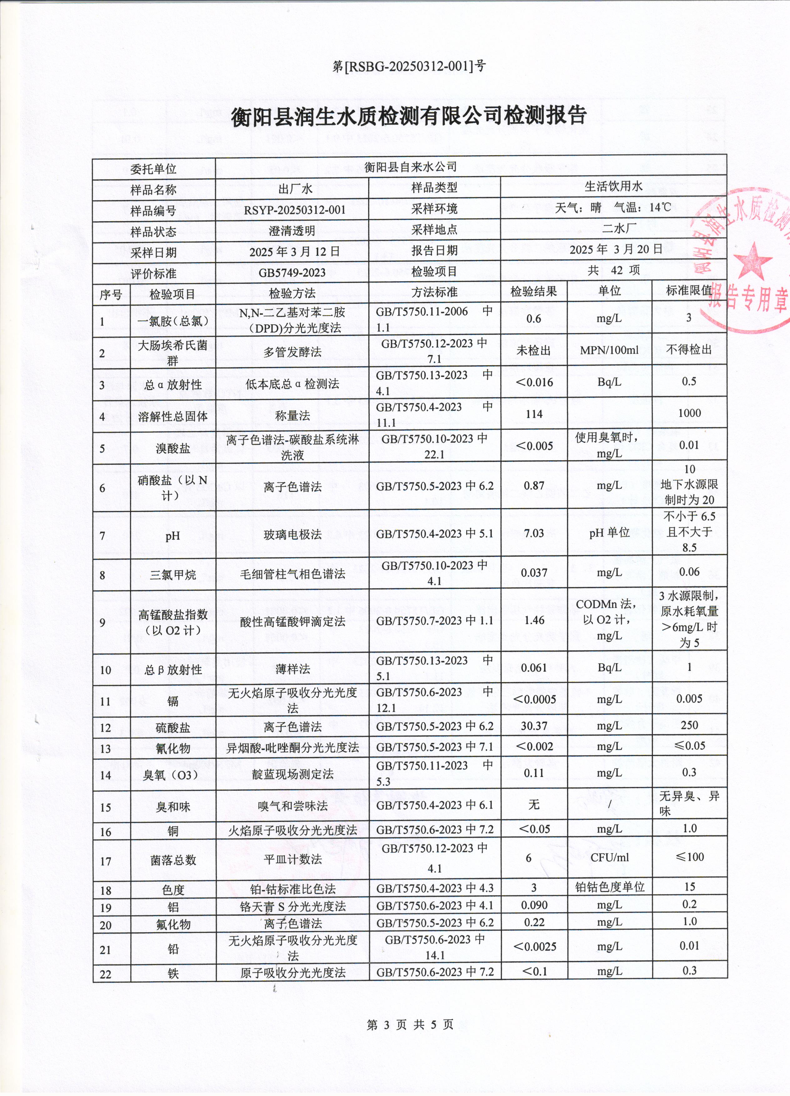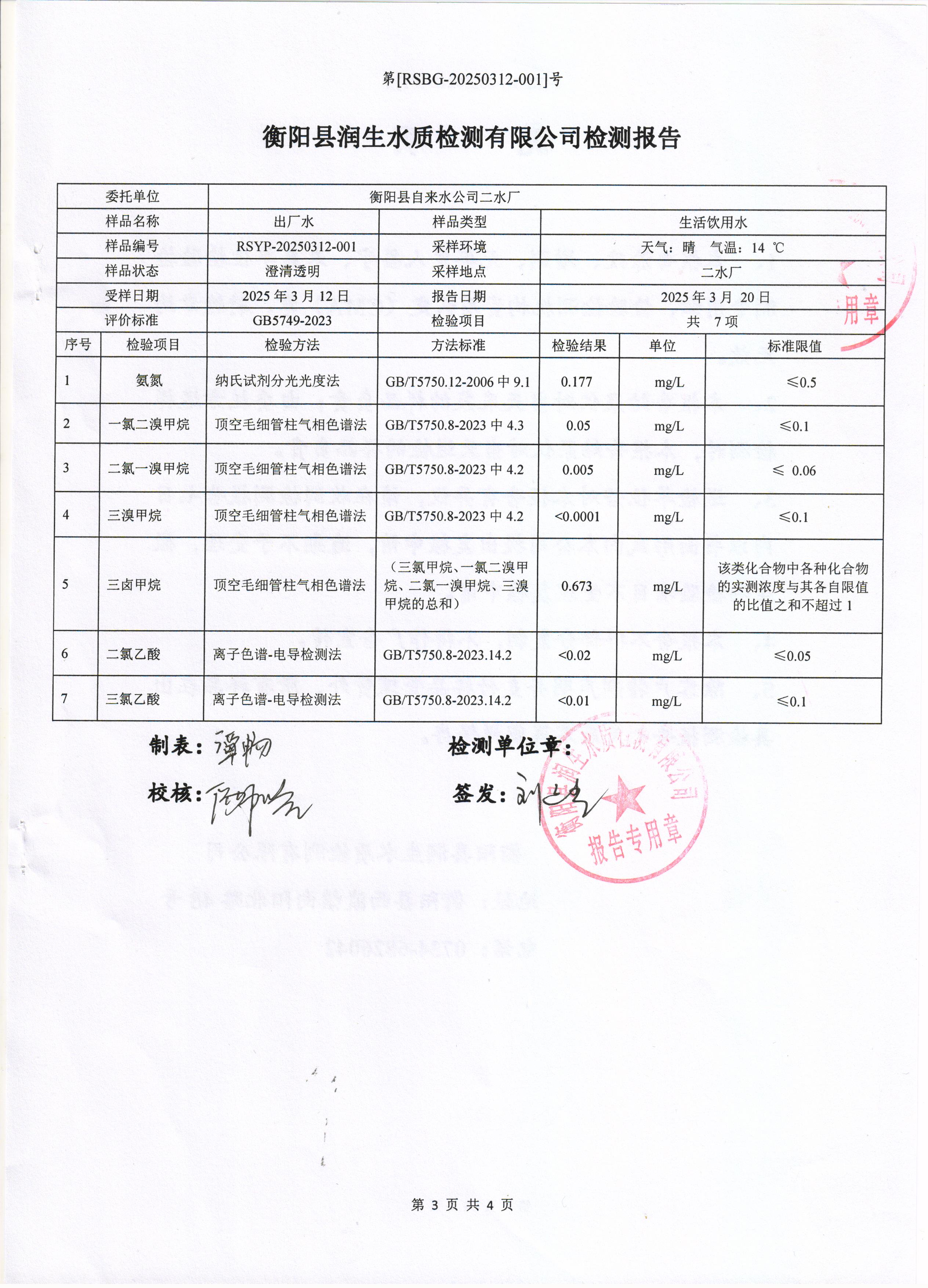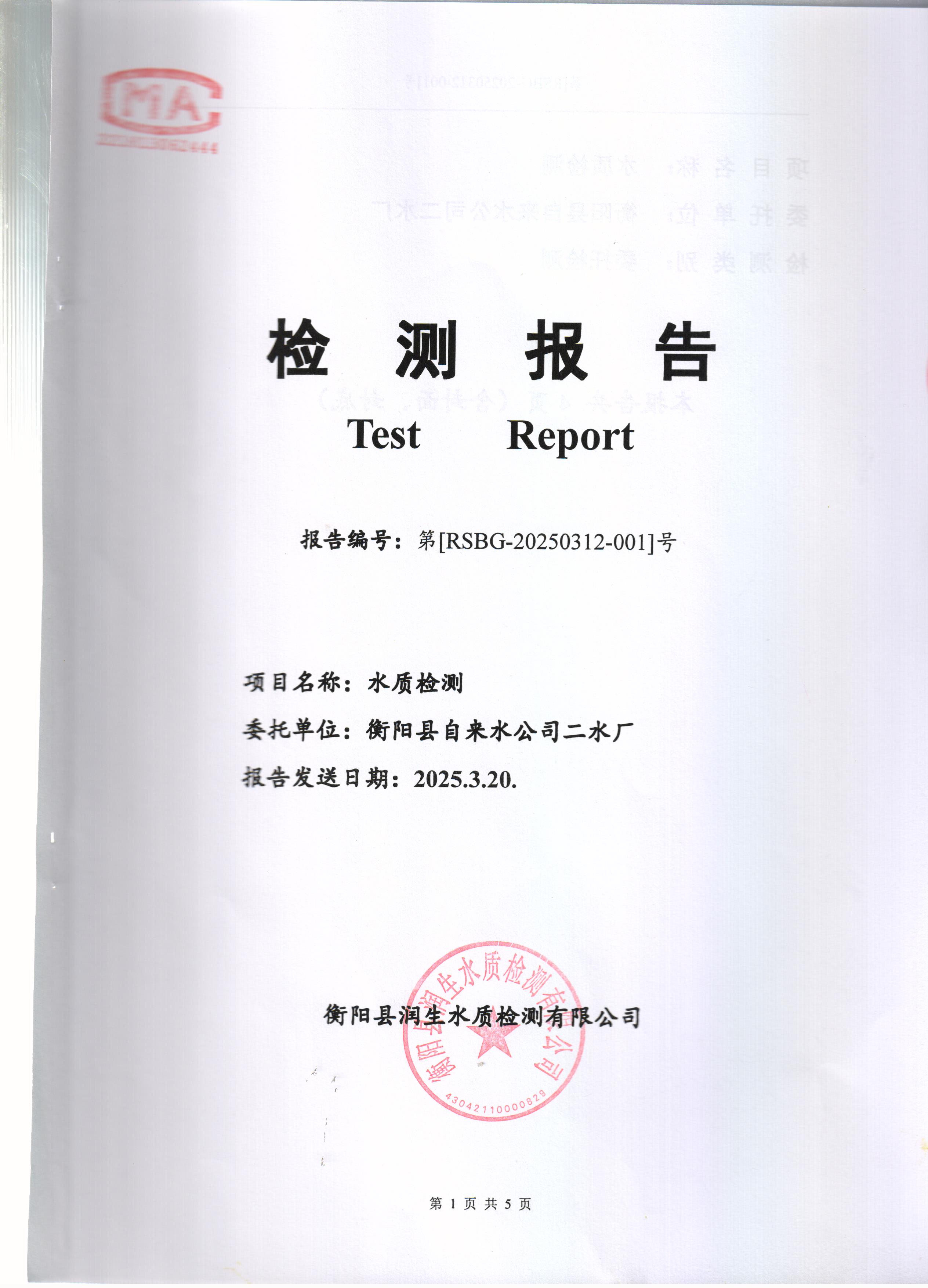 2025年3月份水質(zhì)報(bào)告