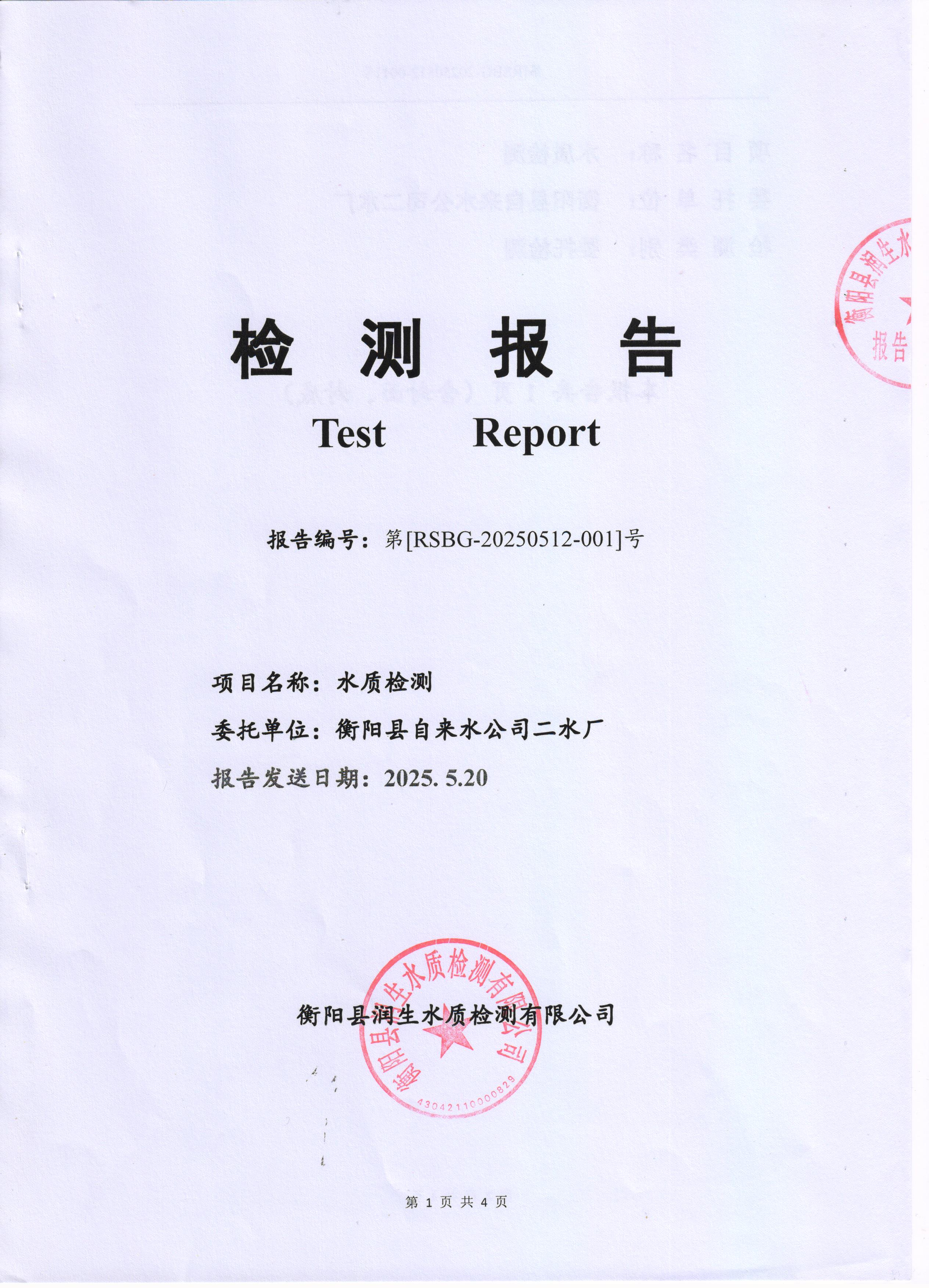 2025年5月份水質(zhì)報告