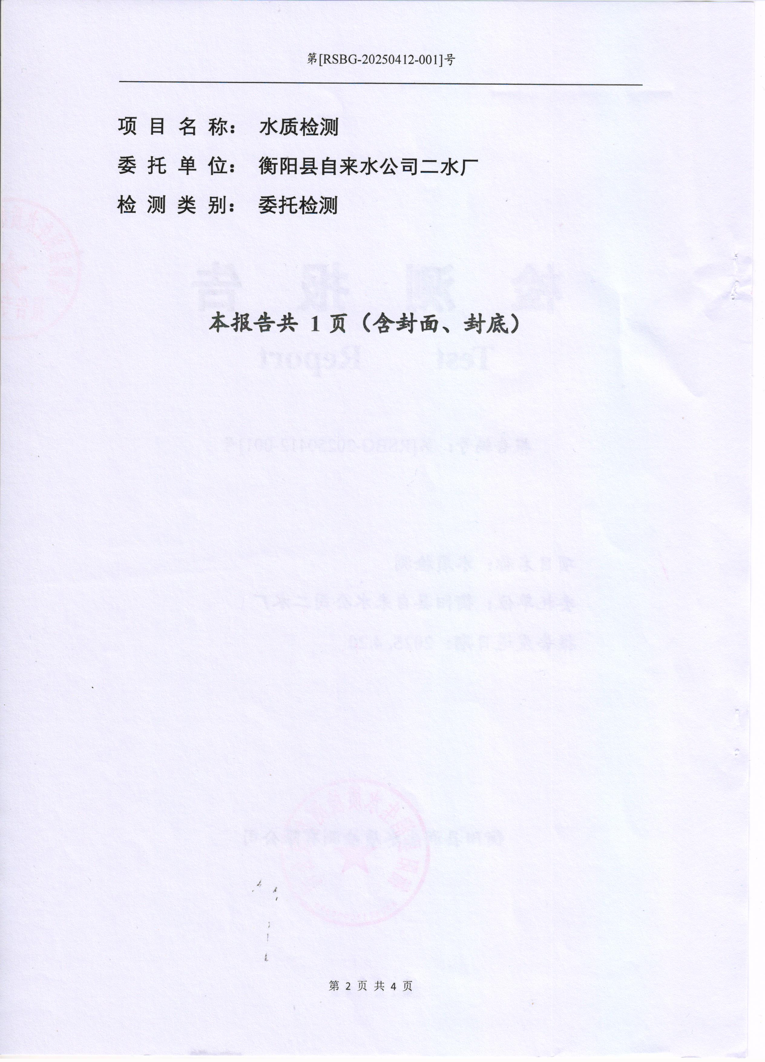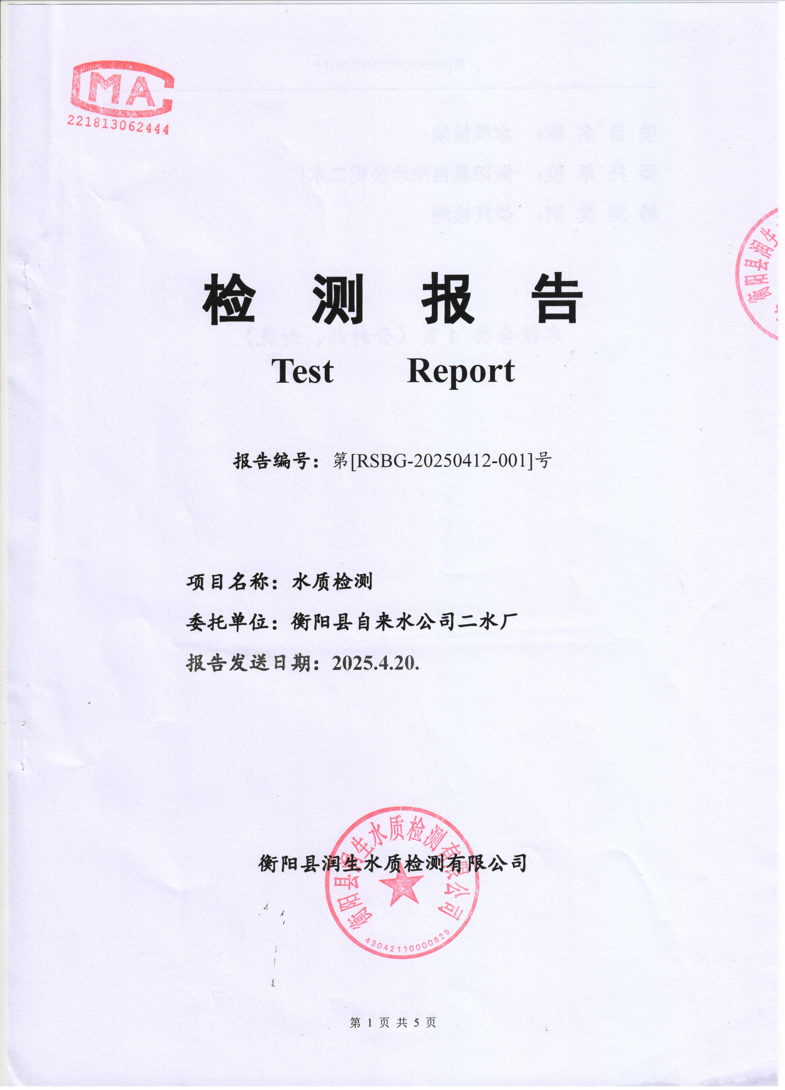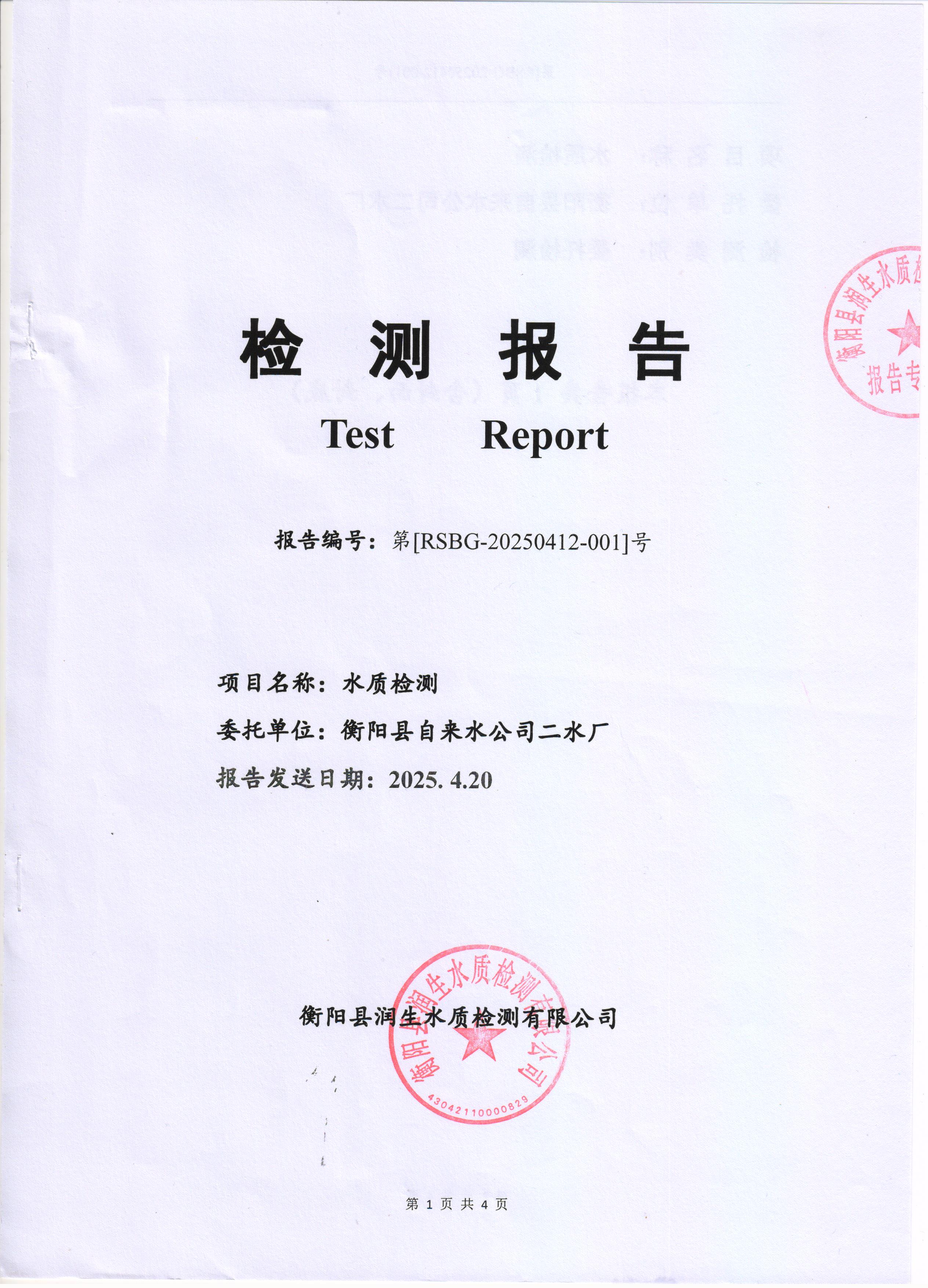 2025年4月份水質(zhì)報(bào)告