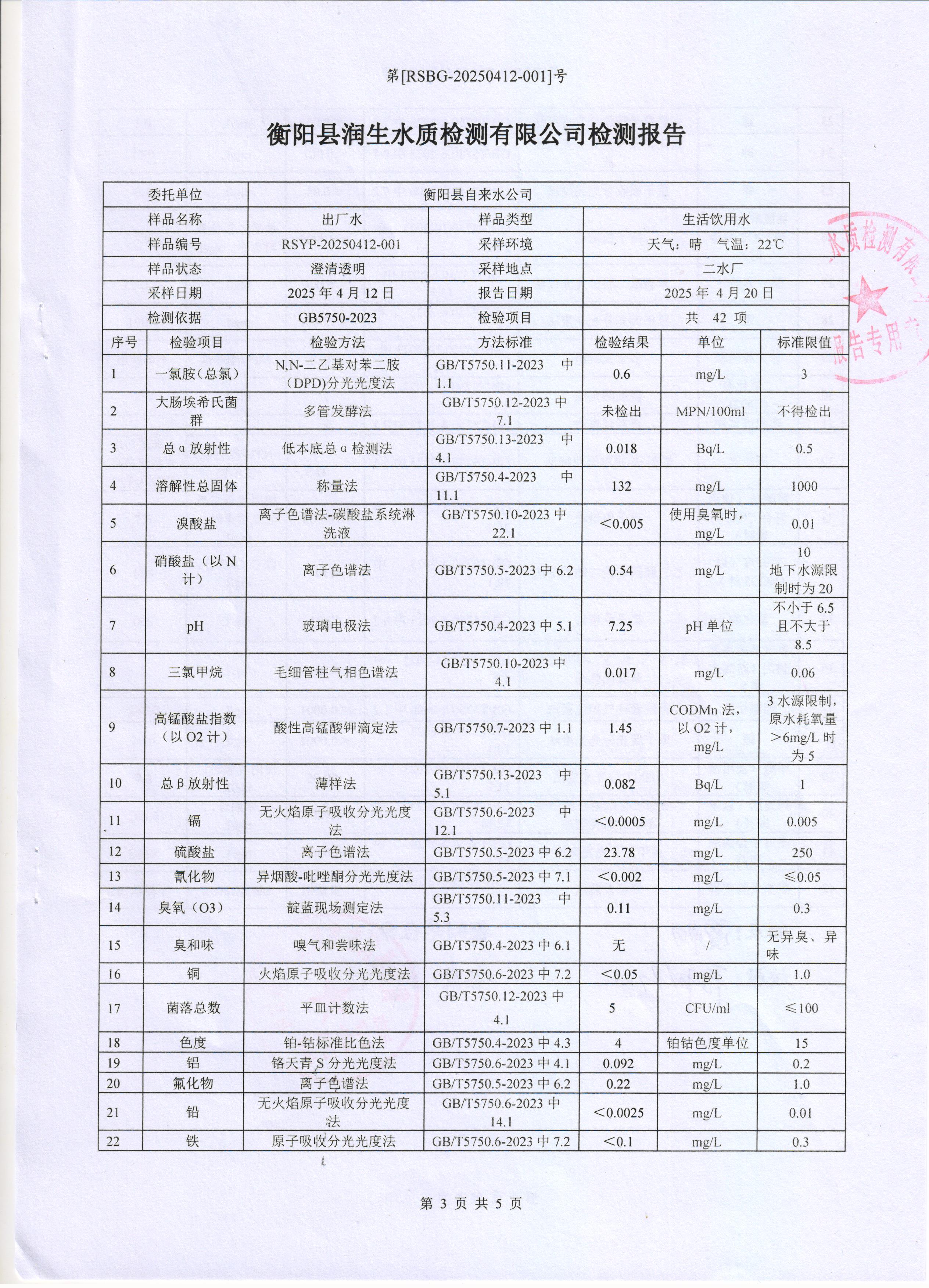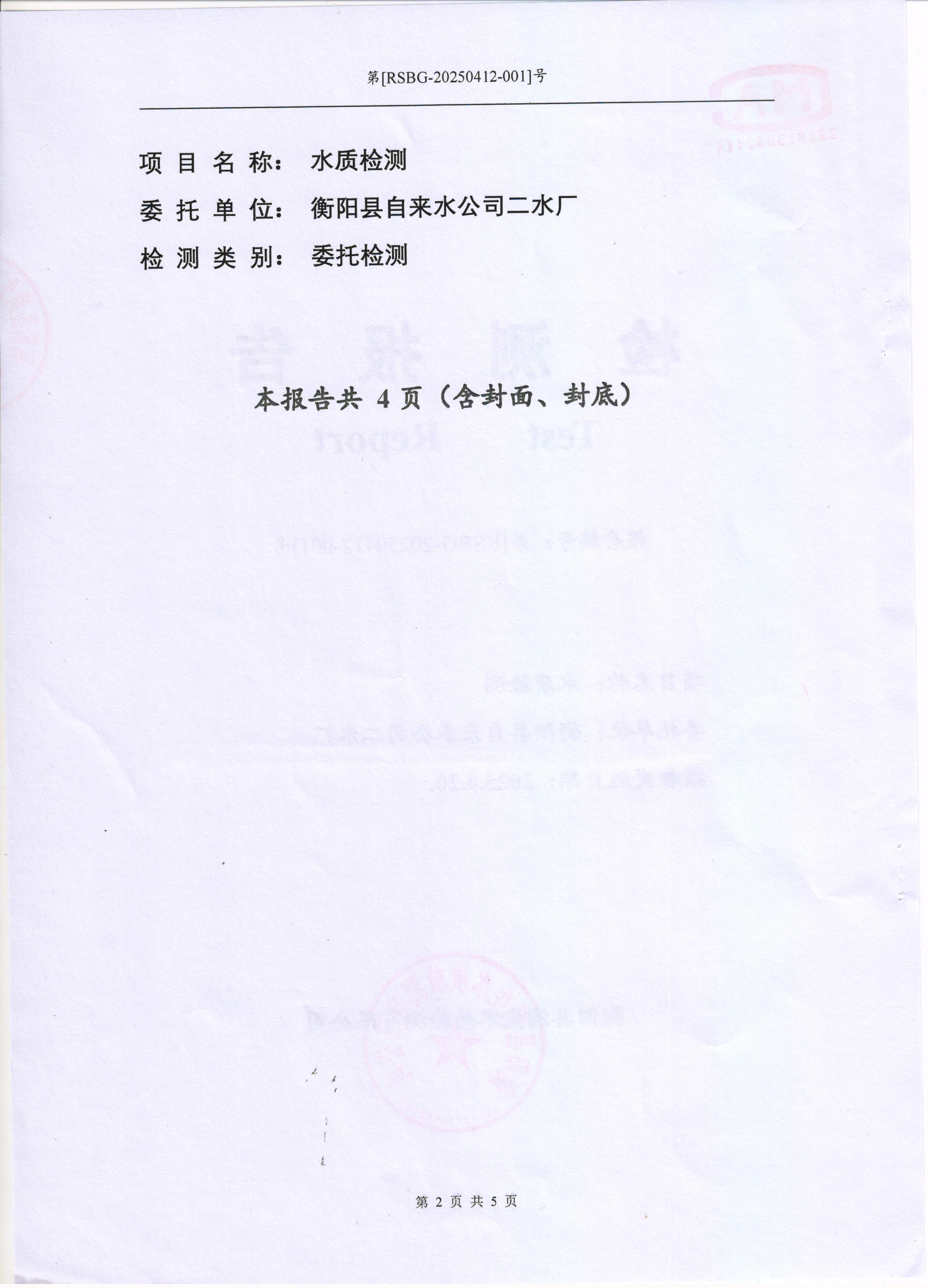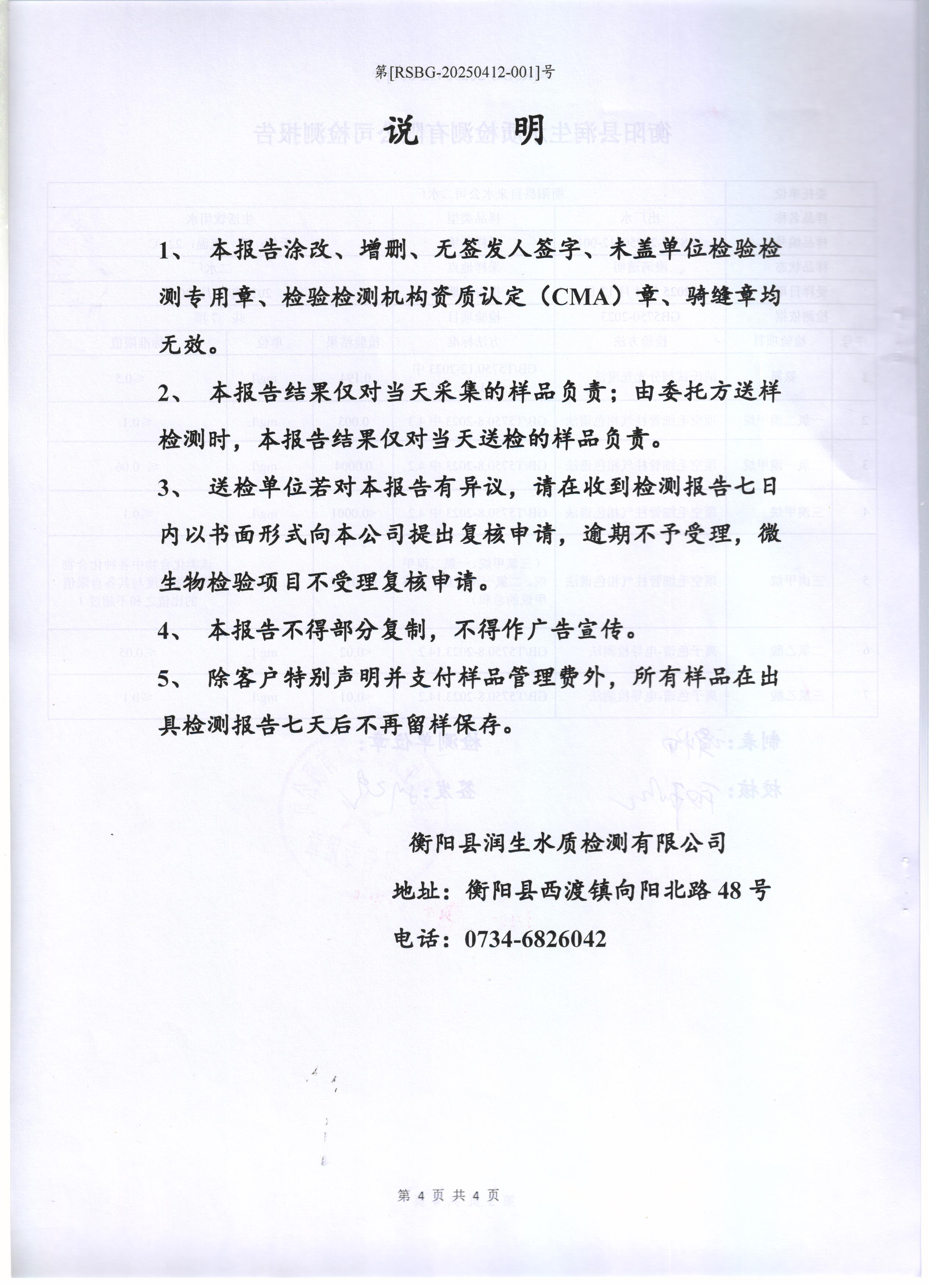2025年4月份水質(zhì)報(bào)告